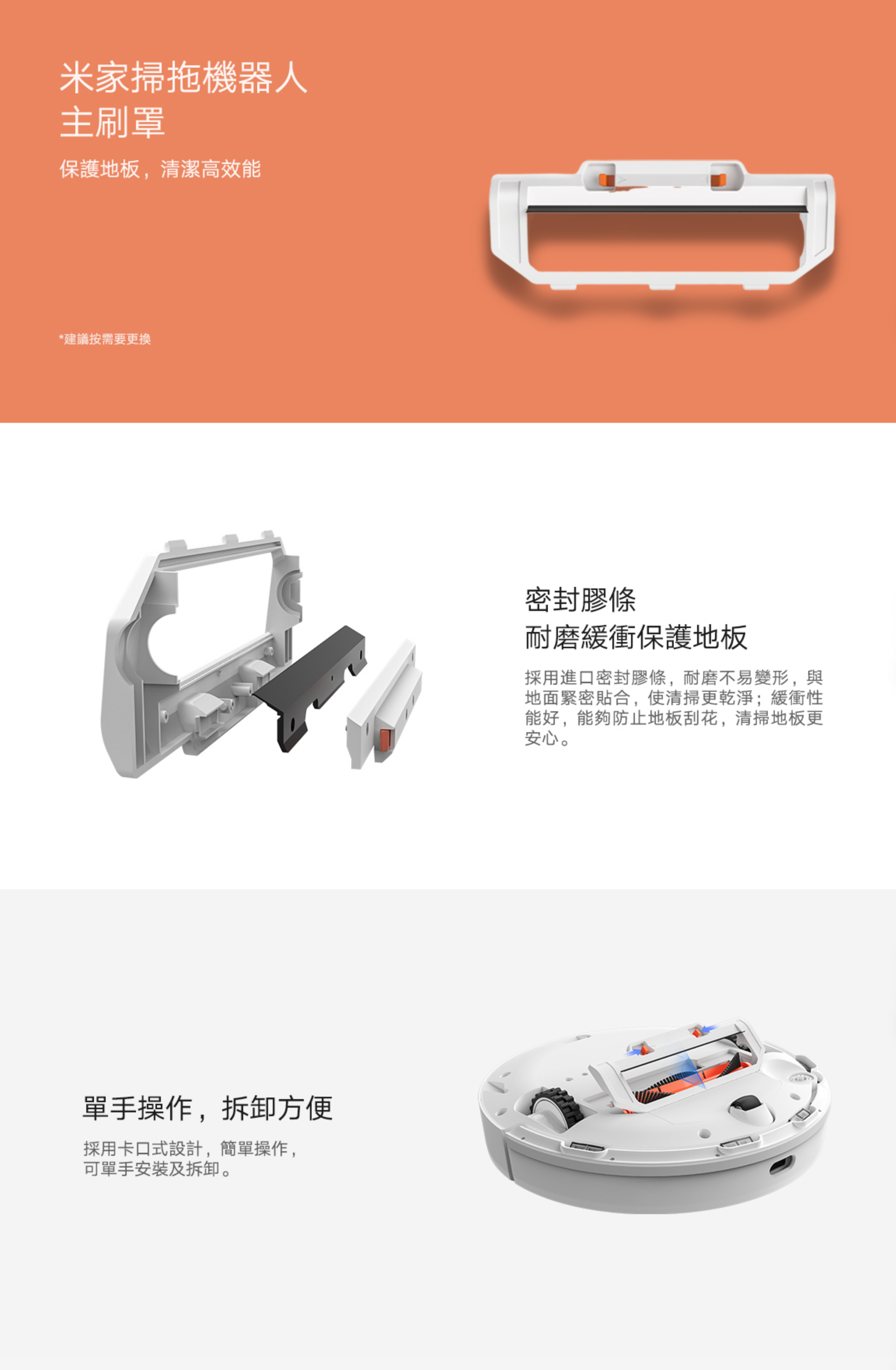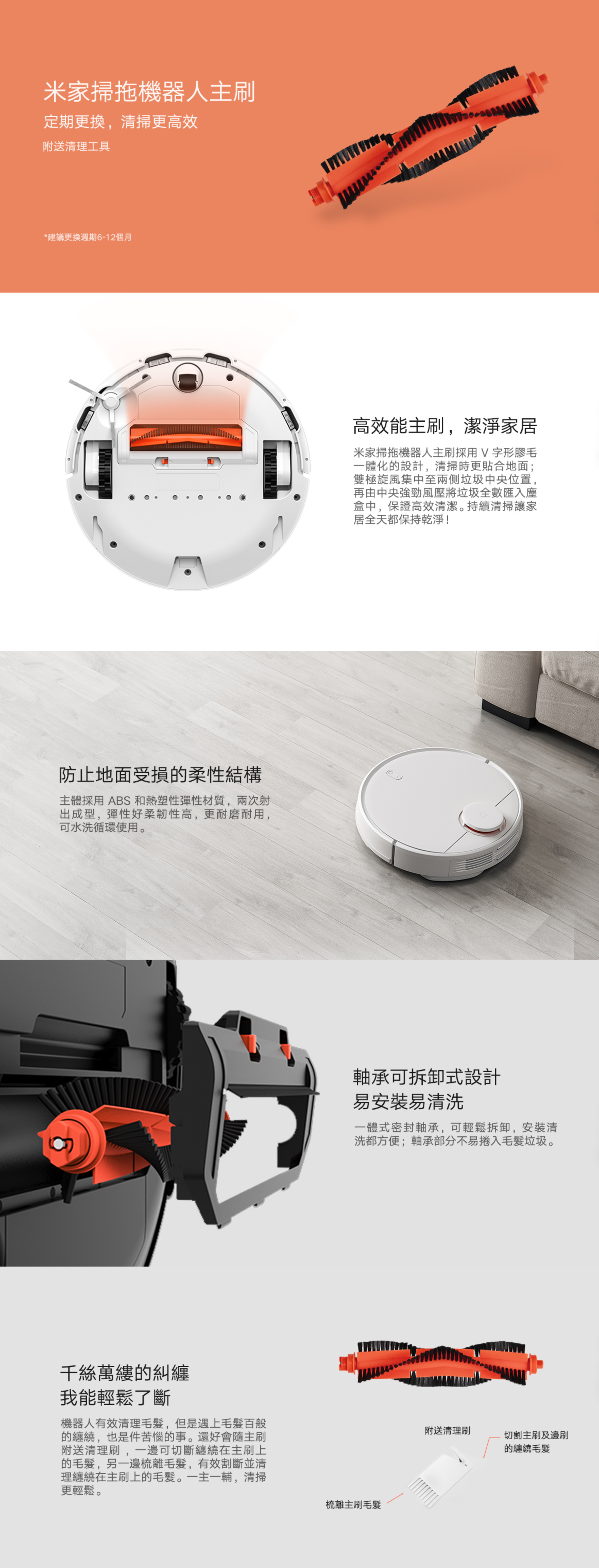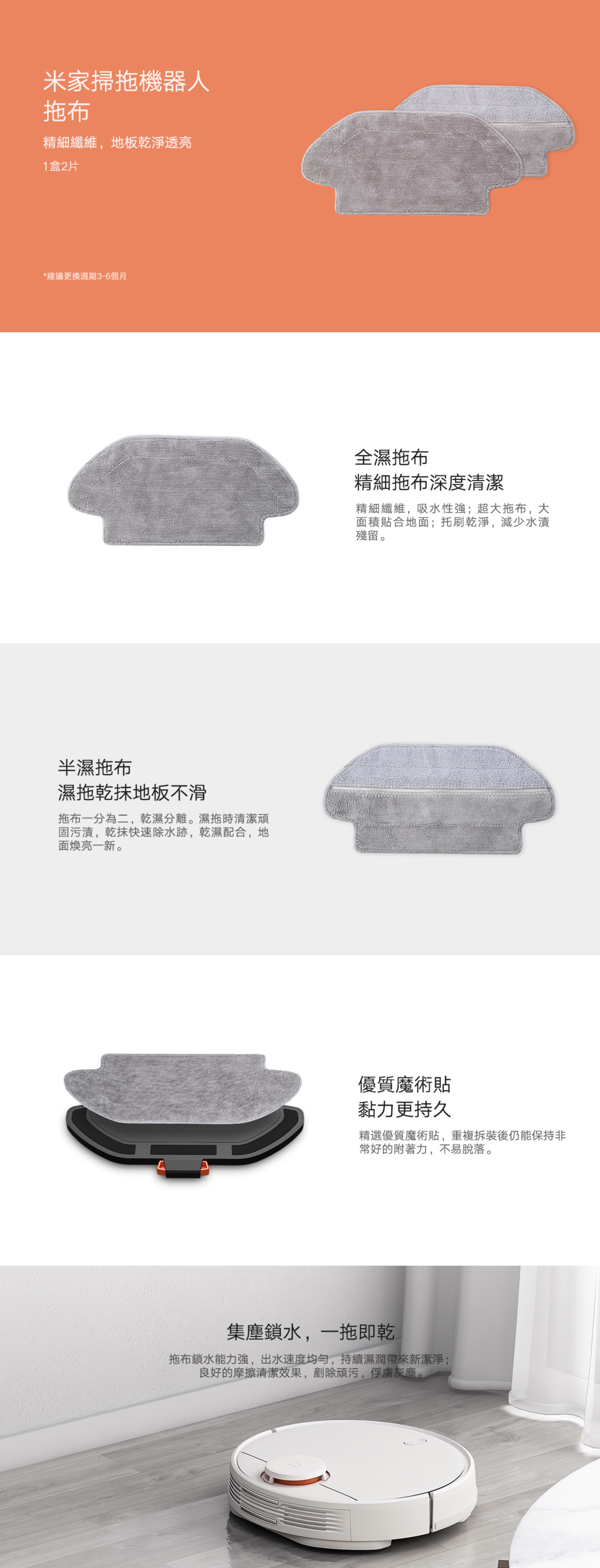 *更換週期:主刷6-12個月、拖布3-6個月、塵盒濾網3-6個月、邊刷3-6個月