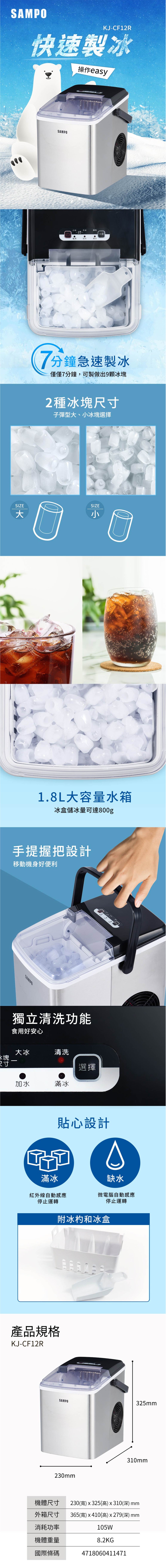 【聲寶】製冰機 (KJ-CF12R)