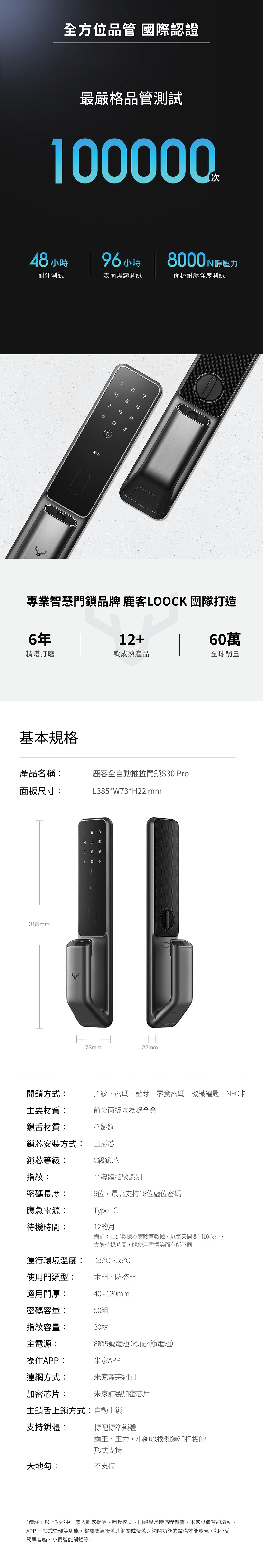 【LOCKIN鹿客】推拉式智慧電子鎖 S30 Pro