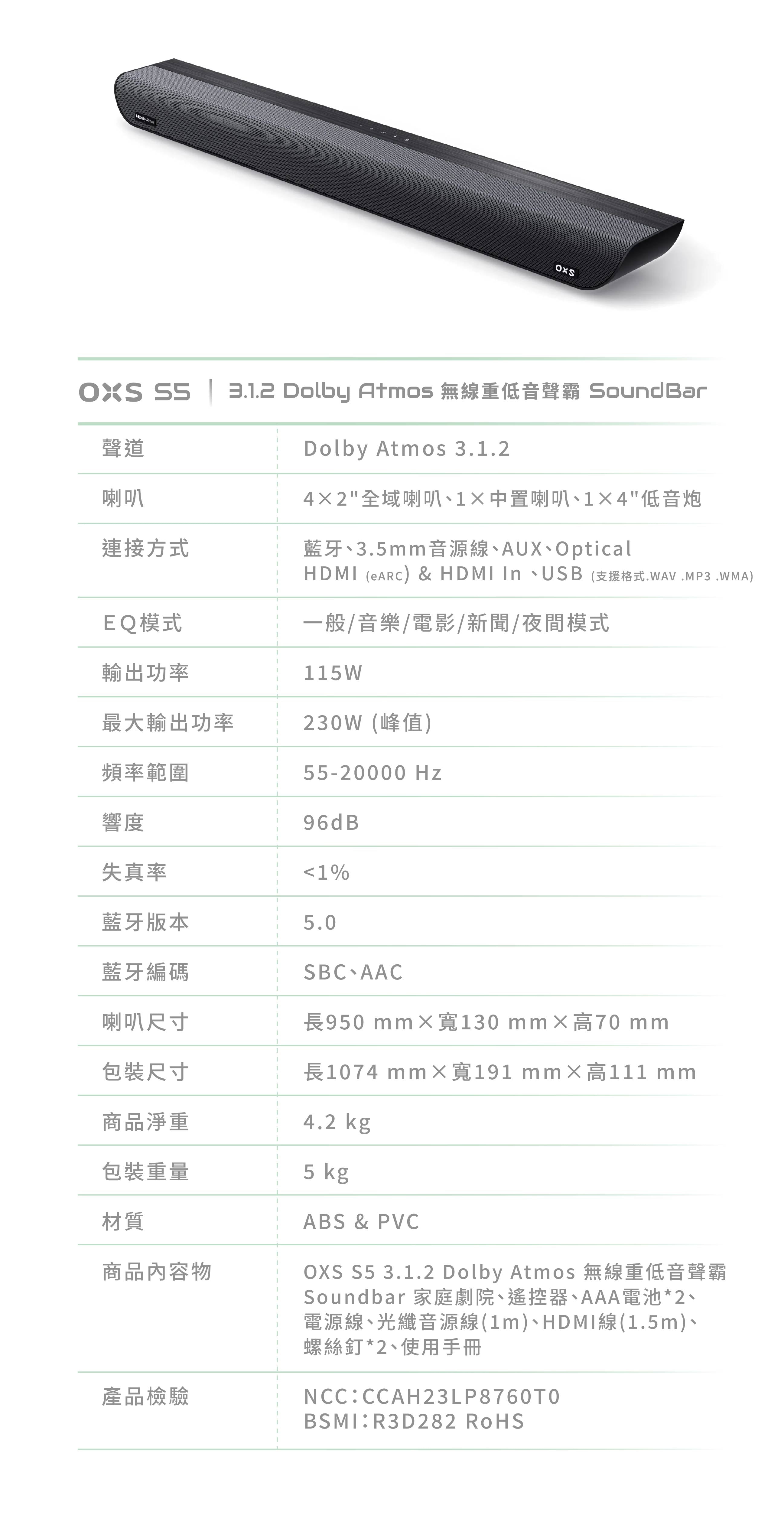 【OXS】S5 無線重低音聲霸
