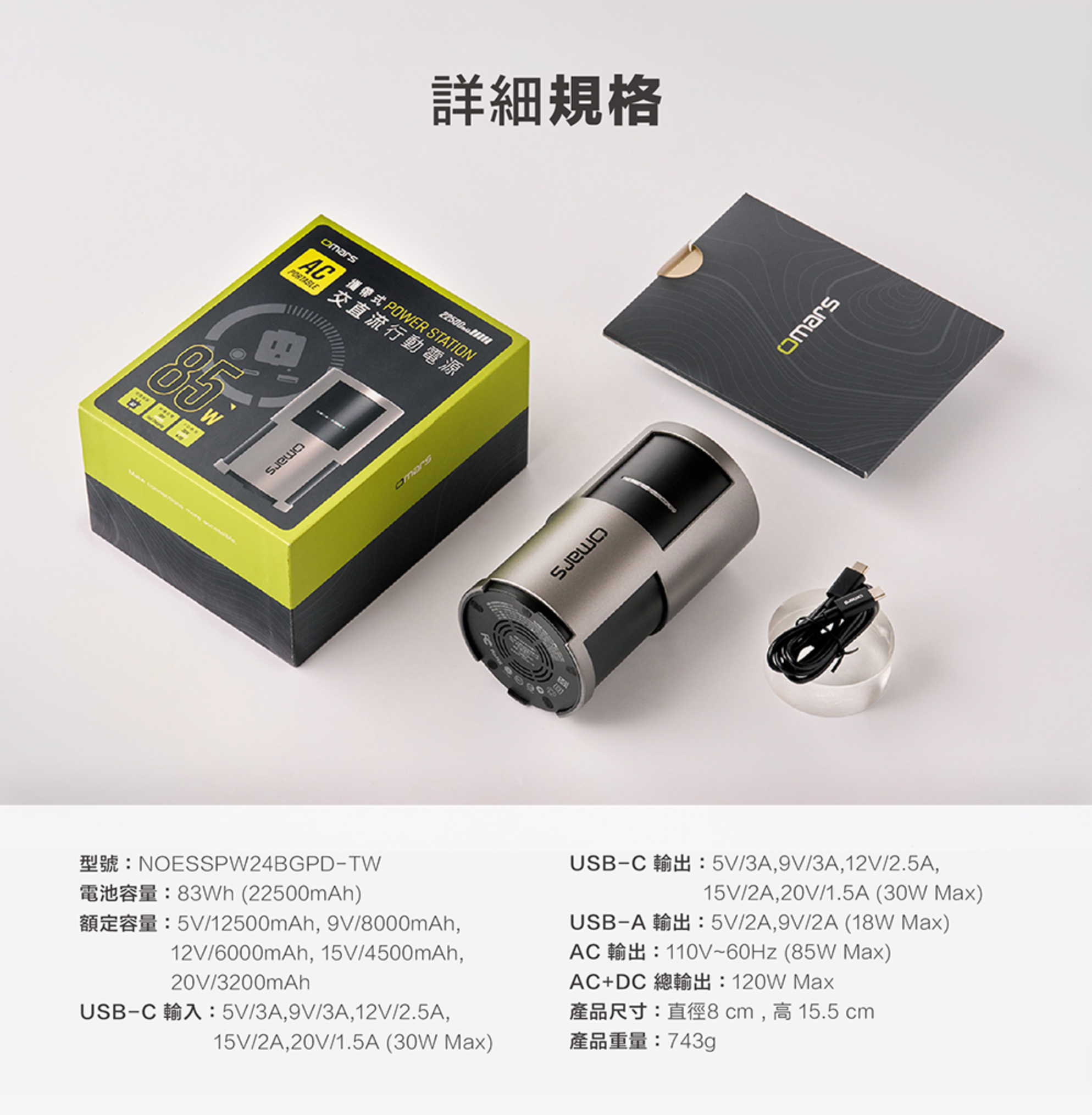 【Omars】3孔攜帶式行動電源22500mAh